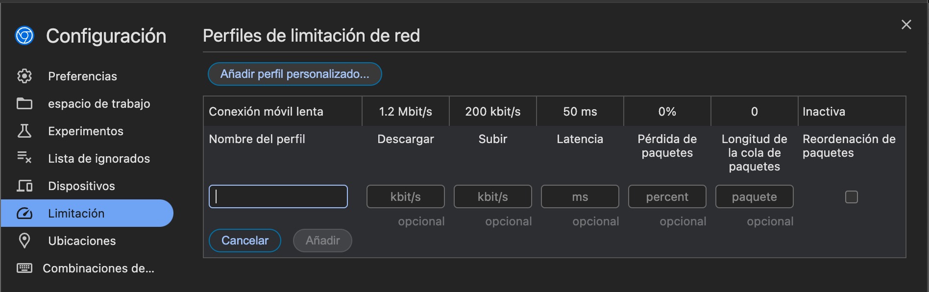 ¿Sabes que Lighthouse tiene una configuración para «limitar» la velocidad de la conexión a Internet? Eso simula diferentes condiciones que ralentizan o aceleran la velocidad de conexión, algo que puedes configurar directamente en Lighthouse.
