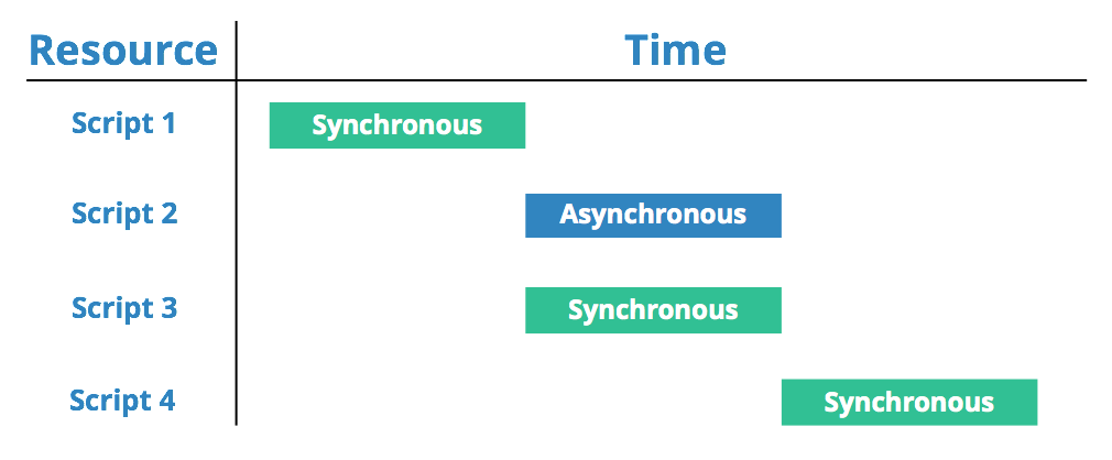 O sea, que en vez de cargar todo de golpe, a la vez, cada código cargado de modo asíncrono espera a que termine de cargarse un elemento (JavaScript o CSS) antes de empezar a cargar el siguiente.