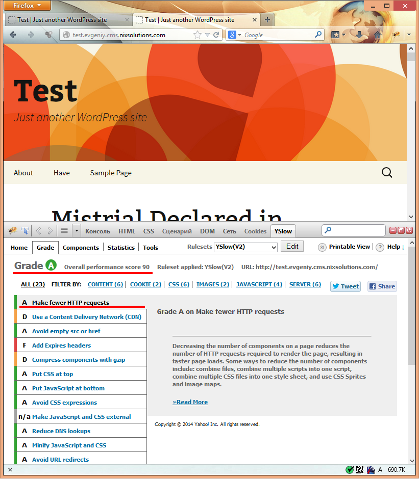 ¿Funciona? te preguntarás. Echa un vistazo a resultados de YSlow antes y después de tener el plugin en marcha…
