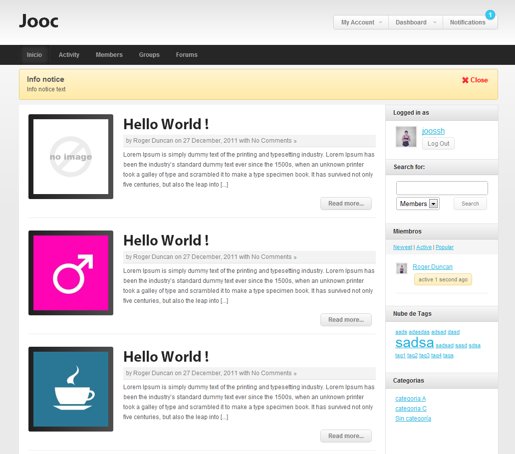 Aquí esta la nueva versión de un tema gratuito que diseñe hace algún tiempo al que no hice ninguna actualización posterior a su primera versión. El tema Jooc lo hice como un experimento cuando iniciaba en la creación de temas para Wordpress y Buddypress y que al principio tenia muchos defectos grandes que poco a poco fui resolviendo. Aqui esta el gran salto de su versión 1.0 a la 1.5.6.