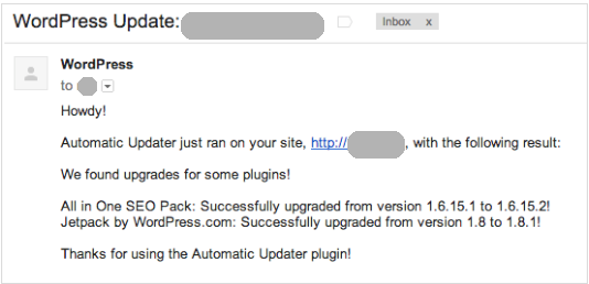 La cosa es tan automática que te enteras mediante un email que te envía el plugin después de actualizar, informándote de lo que se ha actualizado.