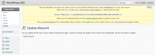 wpmu-settings.phpen WordPress 3.0, y puede borrarse igualmente.Ah bueno, y como siempre, deberías hacer copia de seguridad de tu base de datos antes de actualizar WordPress, que no se te olvide.