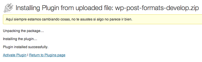 El plugin, disponible en GitHub, puedes instalarlo, manualmente, al viejo estilo. Descarga el zip en el icono de su página de GitHub, y lo instalas en tu WordPress desde «Plugins -> Añadir nuevo -> Subir«. Una vez instalado lo activas y no hay nada que configurar.