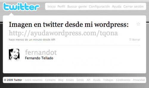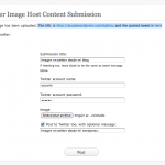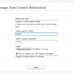 Una vez lo instalas y activas, al método habitual, solo tienes que acceder (o dar acceso a la aplicación que uses) a http://tu-wordpress/twitter-image-host y ahí tienes un formulario para cargar una imagen, introducir tus datos de cuenta de Twitter y te ofrece la URL para compartir en Twitter o publicar directamente la imagen.