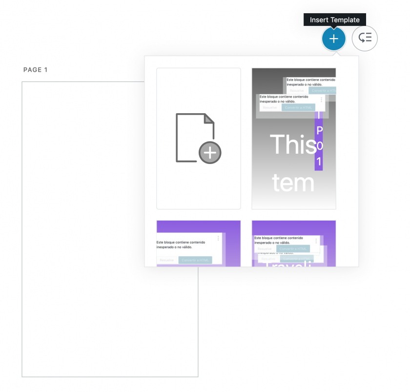 Paso 3: Elige una plantilla o edita la página 1 por defecto en blanco:
