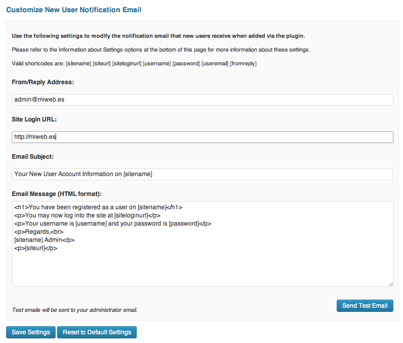 Para terminar, pero no menos interesante, puedes personalizar el email que recibirán los nuevos usuarios.