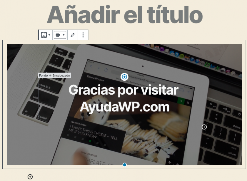 Y luego están las enormes posibilidades de diseño que ofrecen los bloques con ancho amplio o ancho completo, como por ejemplo crear nuevas secciones de página con un fondo a ancho completo con un texto o imagen superpuesto, lo más parecido a los famosos elementos Hero de los temas y maquetadores modernos.