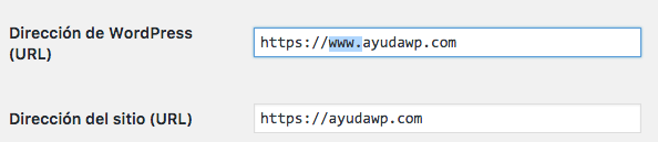 Asegúrate de que es la misma URL, salvo que – conscientemente – tú mismo tengas una instalación personalizada. En caso de encontrarte que son distintas, sin que tú sepas por qué, ponlas iguales.