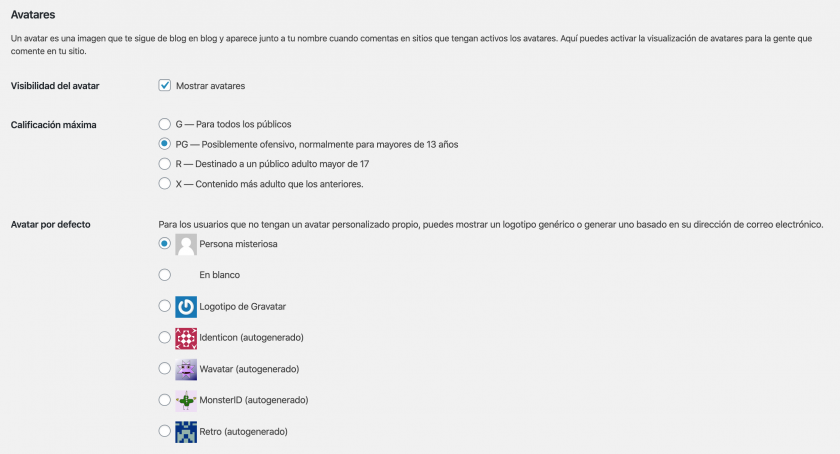 Si activas la primera opción ya no verás los feos y sosos avatares para usuarios sin gravatar.