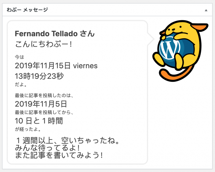 Un simpático wapuu te saludará en el escritorio con información relevante sobre tu actividad en el sitio (de momento solo en japonés, pero tiene su gracia), como el día y la hora, y tu última entrada publicada.