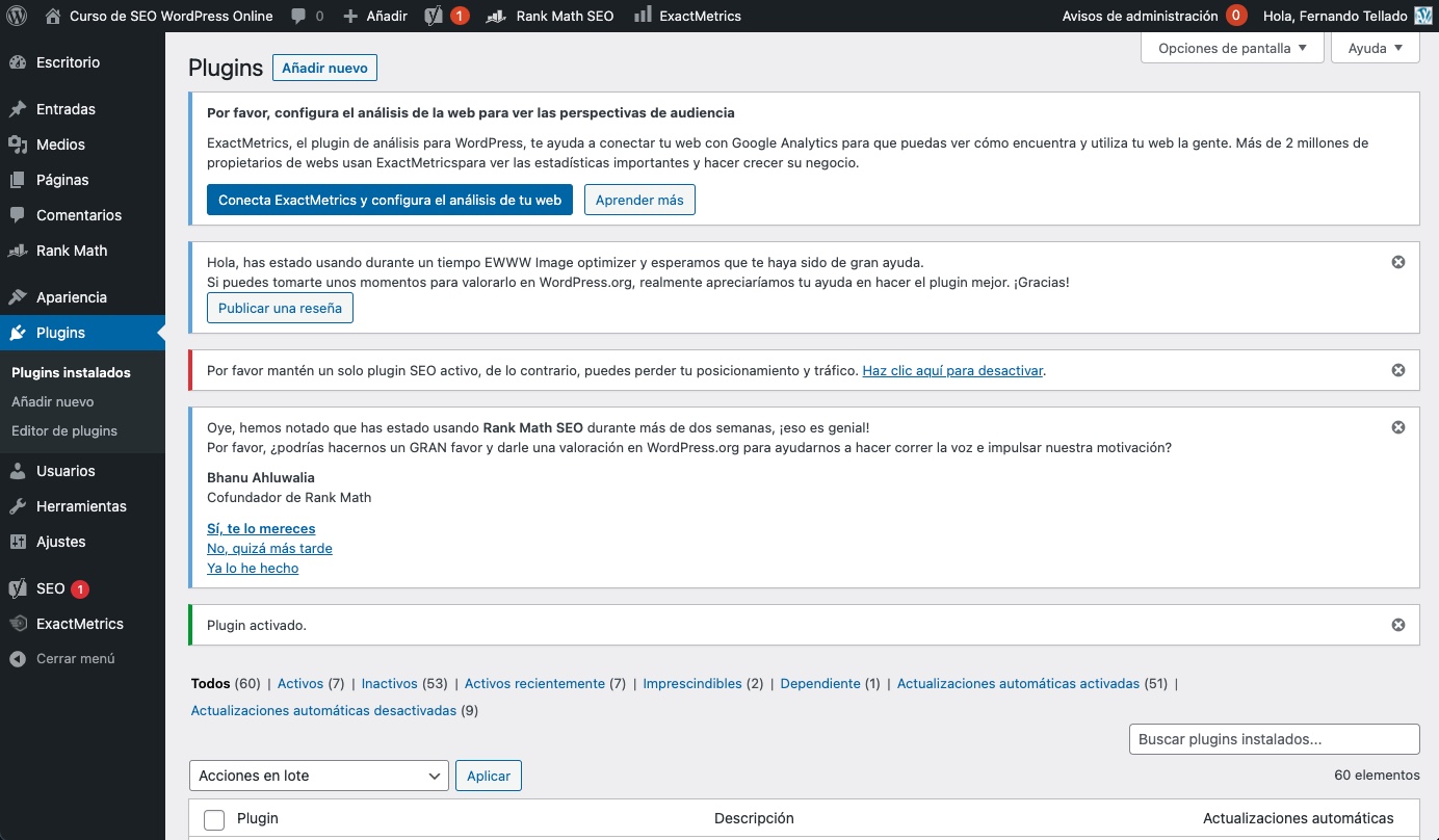 Luego está el exceso de avisos repetitivos de algunos plugins, recordándote tal o cual ajuste, especialmente cuando no puedes descartar esos avisos.