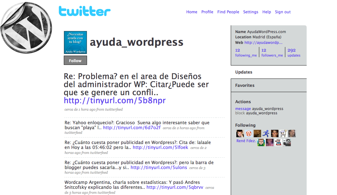 Si eres aficionado a Twitter, el conocido servicio de microblogging, ahora tienes una nueva opción de enterarte de cuando publiquemos algún nuevo artículo en Ayuda WordPress, tanto en el blog como en el foro.