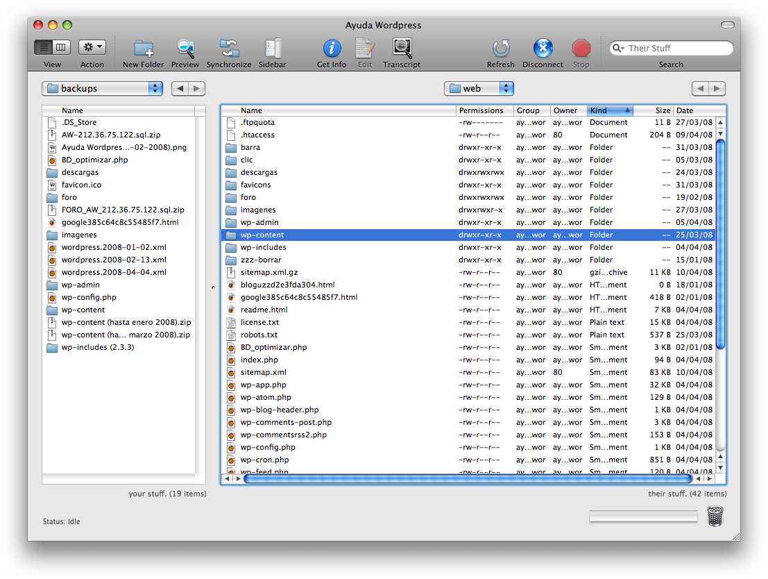En este apartado nos referimos al hecho de descargar las carpetas y archivos importantes de tu instalación de WordPress.