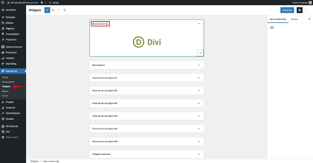 Ahora encontrarás una nueva área de widgets en la que podrás añadir los widgets que quieras, como harías normalmente.