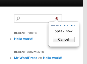 También puedes instalar el plugin HTML5 Speech Search, que añade la misma funcionalidad sin modificar los archivos de tu tema manualmente. Igualmente, solo funcionará con navegadores basados en Webkit, como he dicho antes.