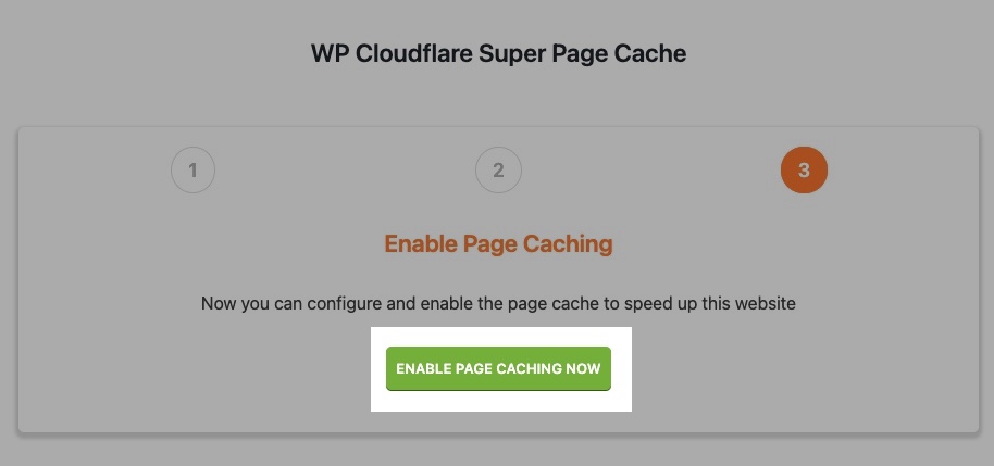 Ya estás tardando en pulsar el botón, no tiene pérdida, es grande, de color verde chillón y se llama «ENABLE PAGE CACHING NOW».