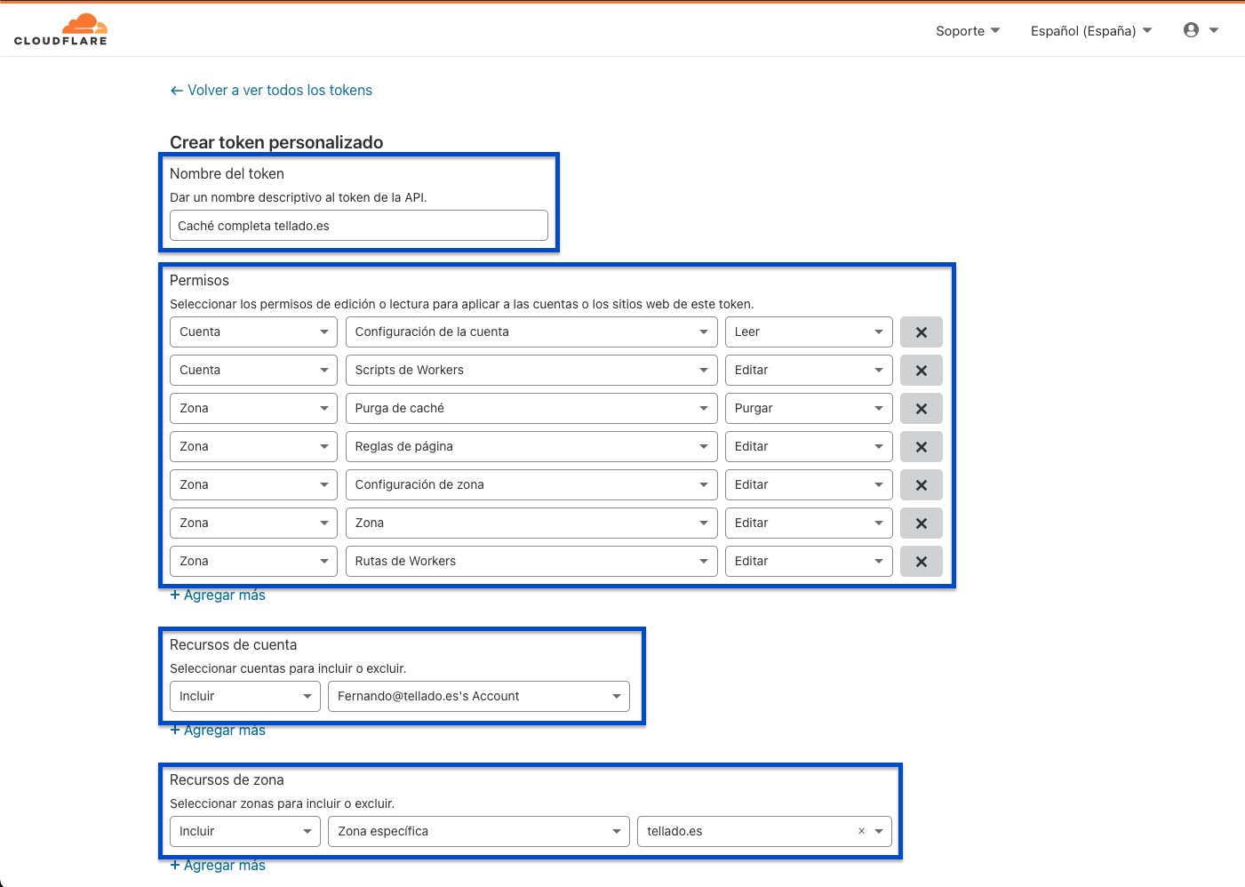 Hola Fernando he probado como pone tú artículo pero no me deja y tenido que optar poner la API global de cloudflare Sabes si hace el mismo efecto si lo hubiese hecho como describes??