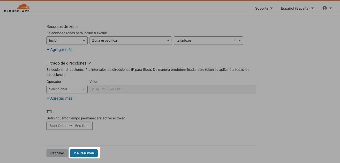 El resto de ajustes de la parte inferior no hace falta poner nada, así que pulsa el botón de «Ir al resumen».