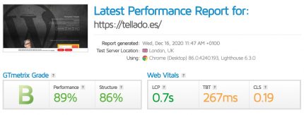 El tiempo ha bajado en varios segundos… Da placer ver todos los indicadores en verde, y un tiempo de carga de 0,5 segundos…