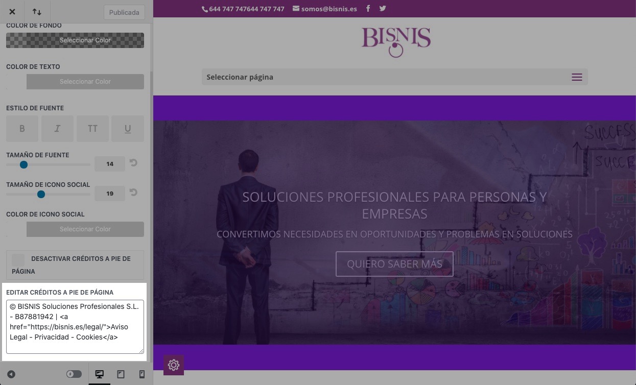 Donde encontrarás, abajo del todo, el apartado «Editar créditos a pie de página»
