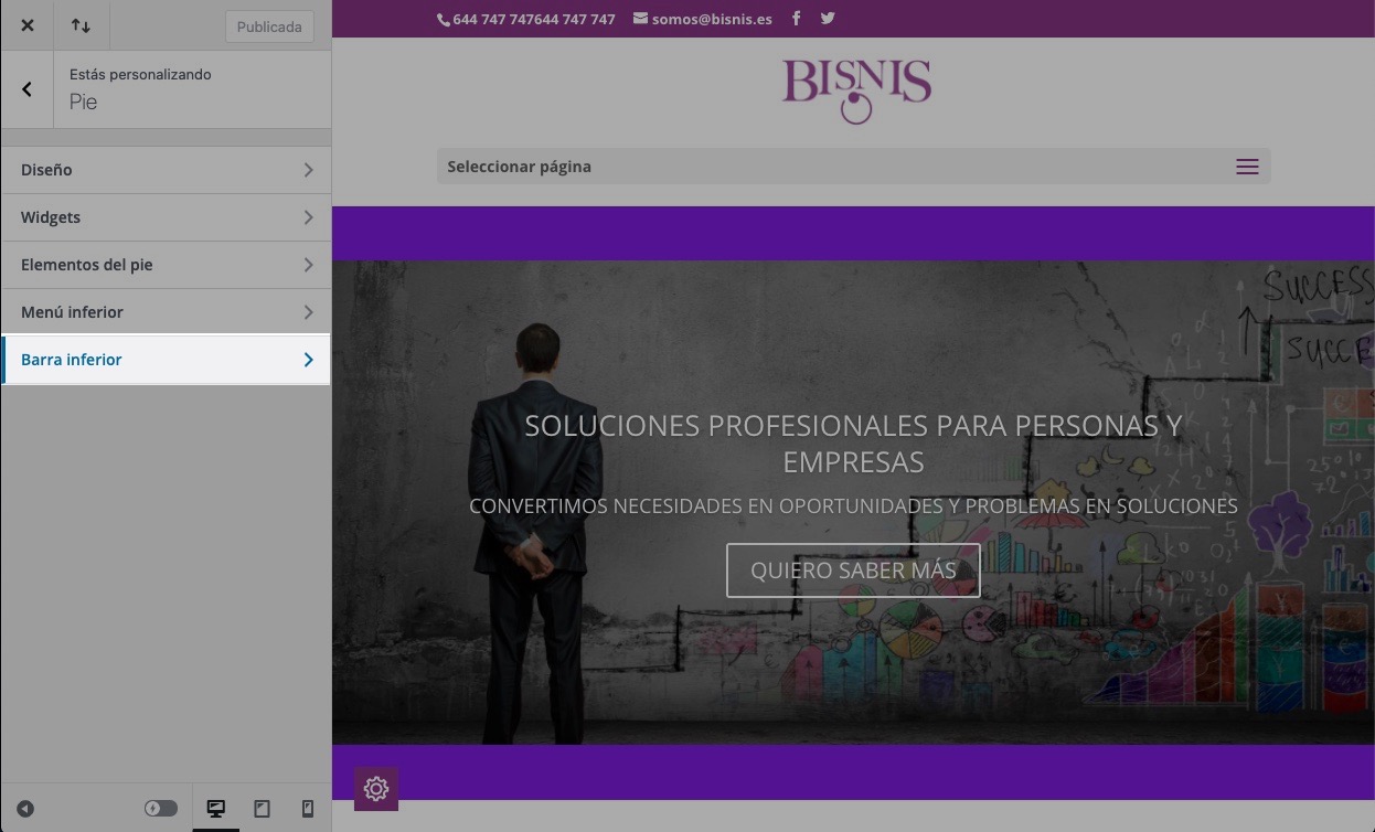 Una vez abra el personalizador ve a la sección del «Pie».