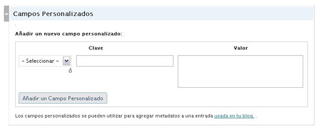 Esta cantidad de metadatos es suficiente para la mayoría de los bloggers, pero por suerte y como Wordpress es una herramienta muy completa, permite el agregado de otros campos, dependiendo de nuestra necesidad.