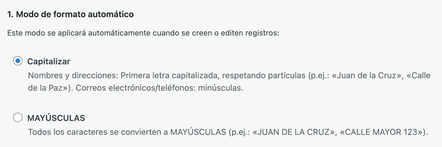 - Tener el formato automático en modo «Capitalizar» y usar la herramienta por lotes en modo «MAYÚSCULAS» para una necesidad puntual.