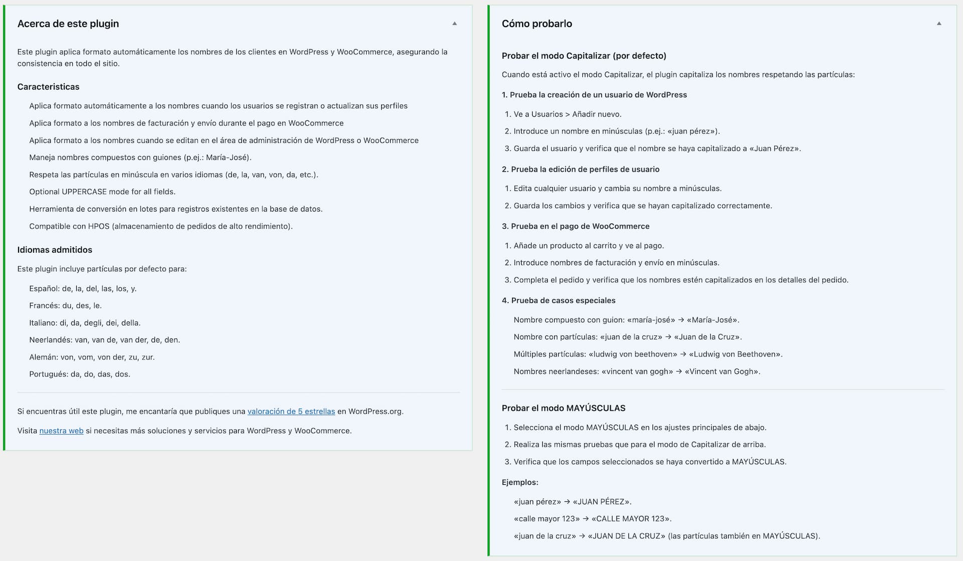 Este plugin surgió de una necesidad real como te comenté al principio. Varios clientes con tiendas WooCommerce me comentaban que tenían problemas con sus facturas porque los nombres aparecían en minúsculas o mal formateados, lo que generaba discrepancias con las facturas oficiales y problemas en auditorías.
