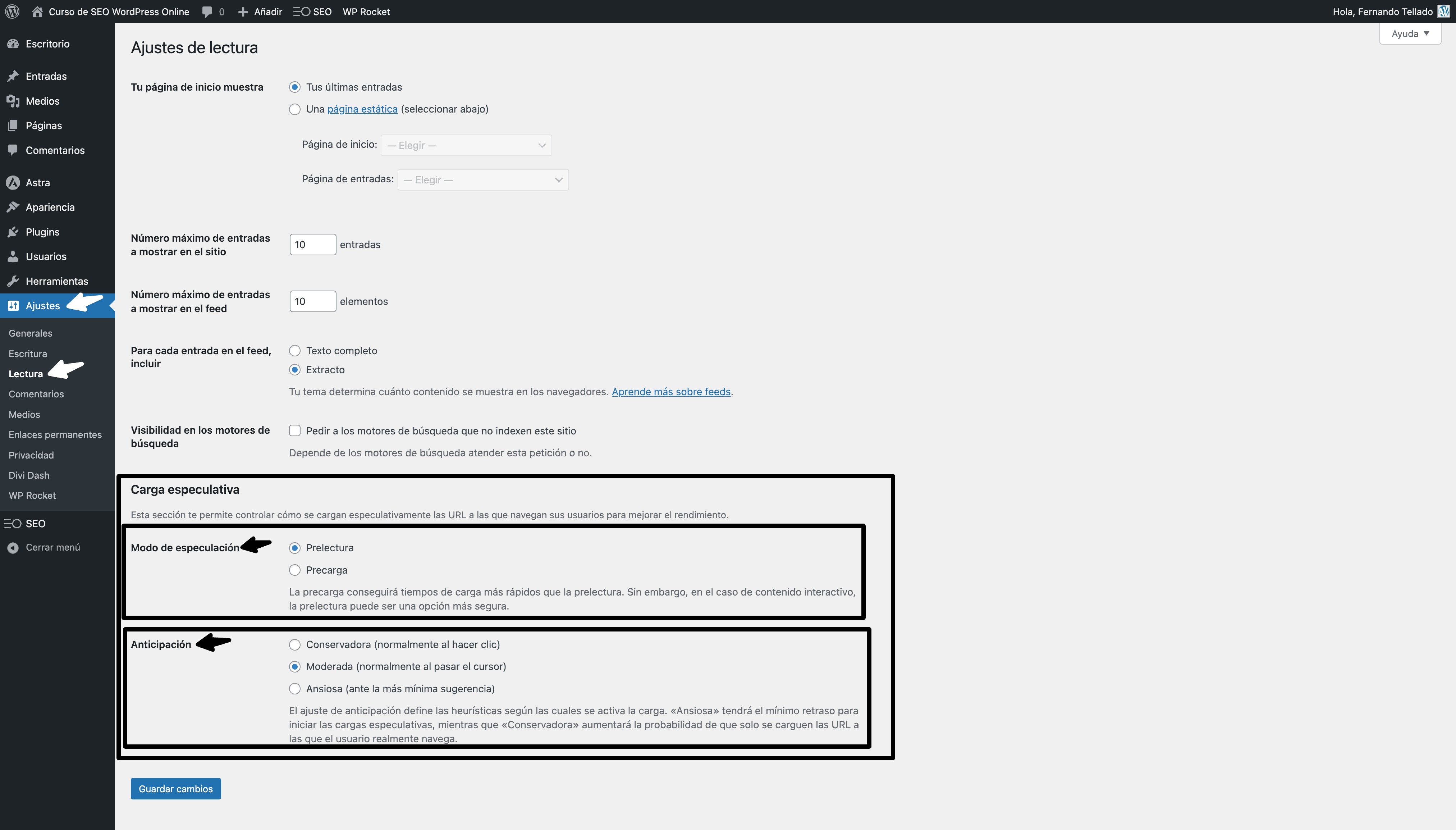 Hasta la versión 6.8 solo era posible incorporar esta tecnología mediante un plugin, pero desde entonces estaba previsto que WordPress incorporase una nueva sección de opciones en la pantalla de ajustes de lectura, en la que configurar el nivel de anticipación (ver arriba) que queremos aplicar a la carga especulativa y si preferimos precarga o prelectura, algo así…