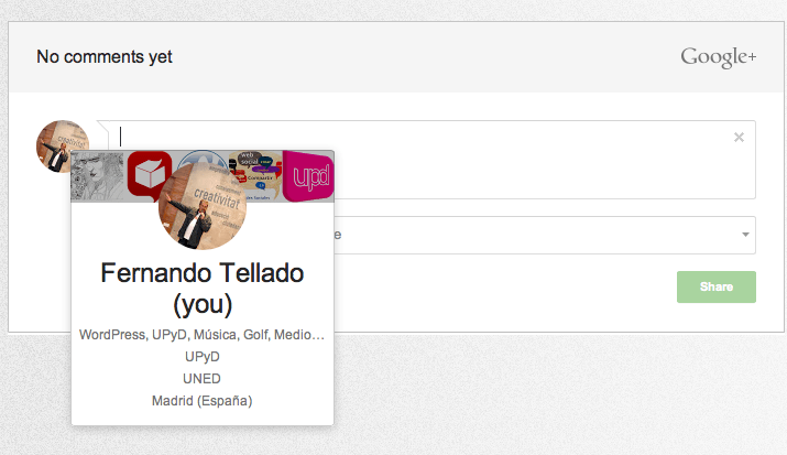 Es casi lo mismo que comentar con tu cuenta Google mediante Disqus no? Con Disqus también se muestran en el perfil de G+?