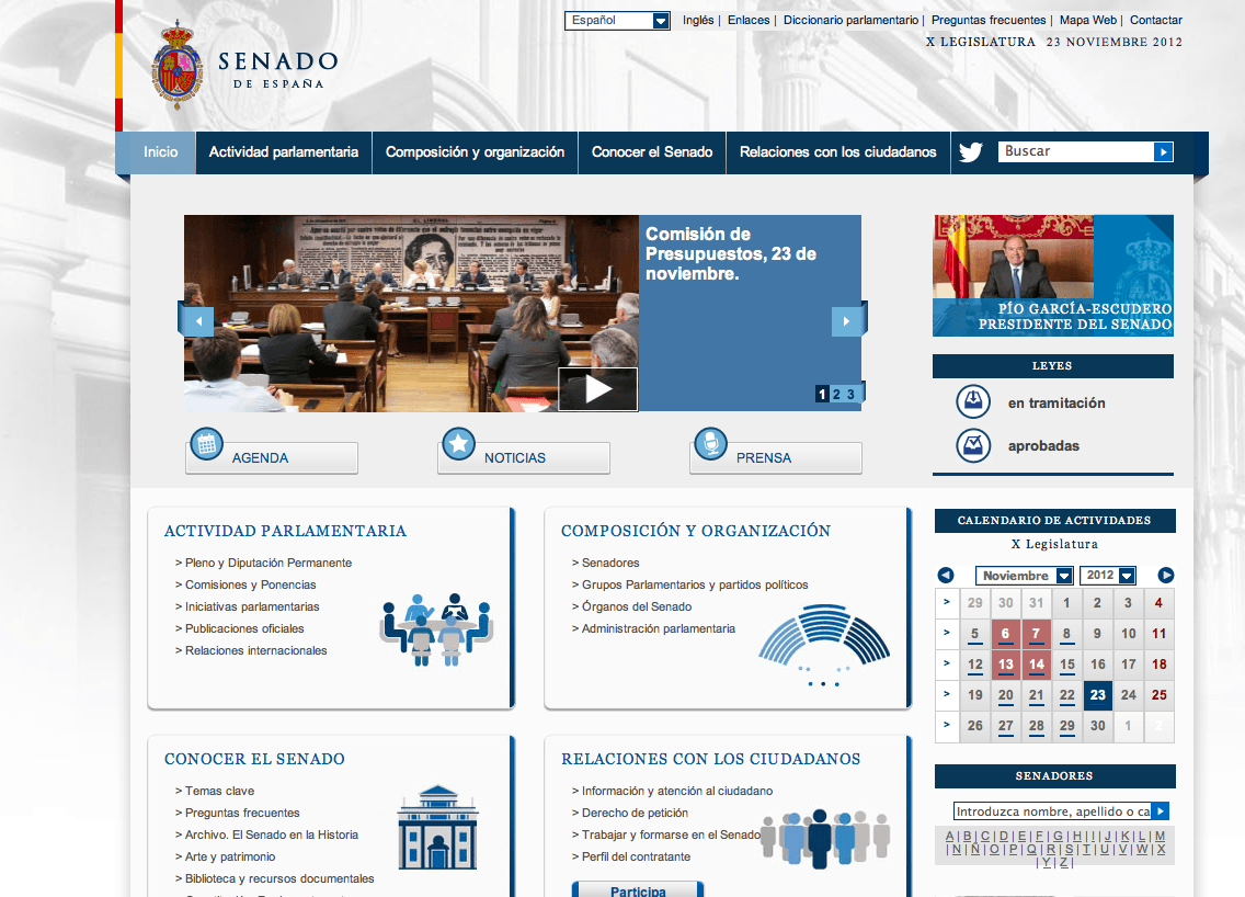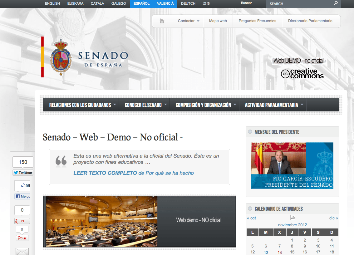 Ayer me avisaba Txema Campillo de un proyecto en el que se estaba haciendo un clon Open Source de la web del Senado de España, que hace poco ha sido renovada por el módico precio de medio millón de euros.