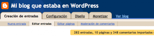Al finalizar te habrá creado las entradas, páginas y comentarios, olvídate de categorías y etiquetas, que esto no es WordPress, y tu blog en Blogger creado en unos pocos clics.