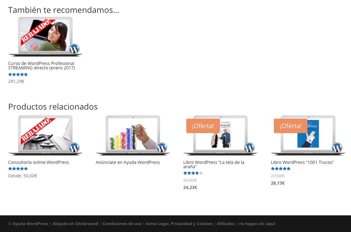 Como ves, hay distintas maneras de controlar los productos relacionados de WooCommerce, y en mi opinión siempre debes tomar control de esta funcionalidad, en el sentido que sea, tú eliges el modo.