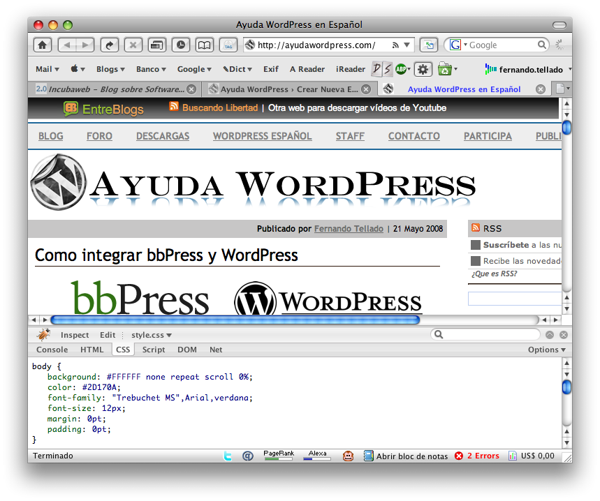 Ahora bien, hay una herramienta mucho mas completa, y también mi elección pesonal. Y es que si utilizas el navegador Firefox puedes instalar el mejor addon que existe para webmasters, se llama Firebug.
