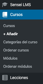Cuando instalas Sensei Paid Courses verás un nuevo menú, en el que crear nuevos cursos y lecciones. El primer paso es crear un nuevo curso.