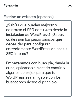 Algo que no es muy obvio, y te recomiendo, es que siempre definas un extracto de la lección.