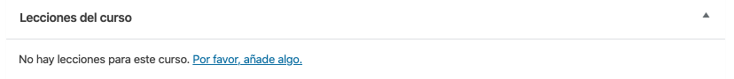 Más abajo tendrás una lista de las lecciones de las que comprende el curso, o si aún no hay ninguna, un enlace para que crees tu primera lección.