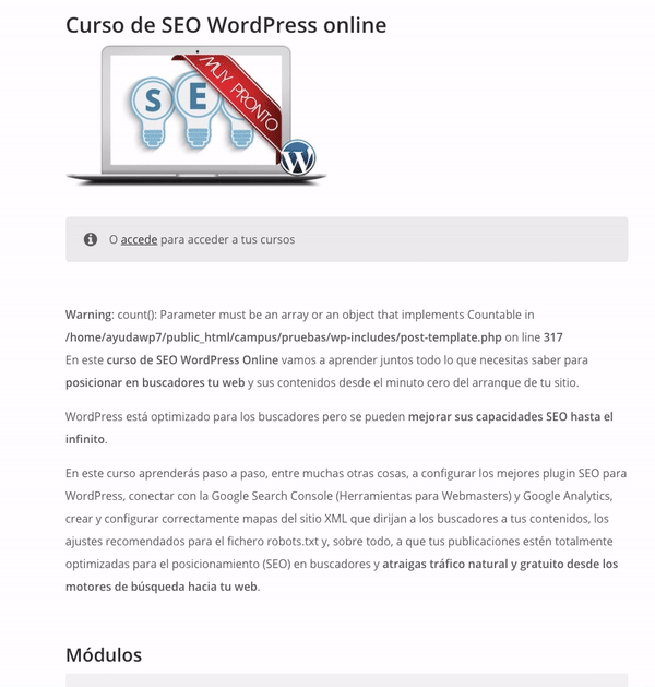 Eso sí, si ya notas lenta la web te conviene optimizarla o, si no es posible, cambiar de hosting. Una academia online no te puedes permitir que sea lenta.
