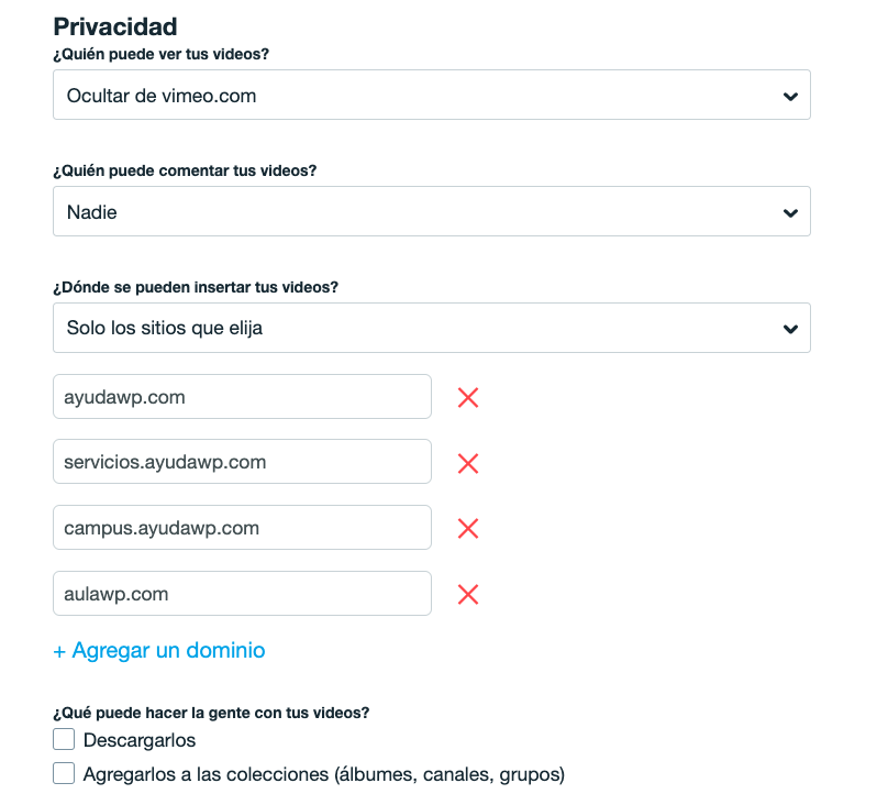 Una necesidad será la de una plataforma de vídeo que te permita que los vídeos no se puedan descargar o incluso que solo se puedan visualizar en webs concretas, para evitar el robo de contenido.