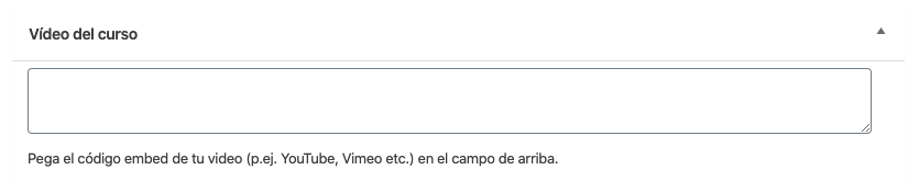 Una vez pongas el texto y demás, lo siguiente es una caja en la que puedes añadir el vídeo, que en la página del curso normalmente será el de presentación.