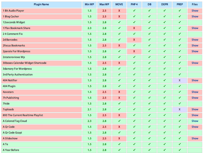 wp-contentestá referenciada en al menos un archivo. Remítete a la explicación anterior. - PHP 4 – Esto significa que el plugin es compatible con PHP4.