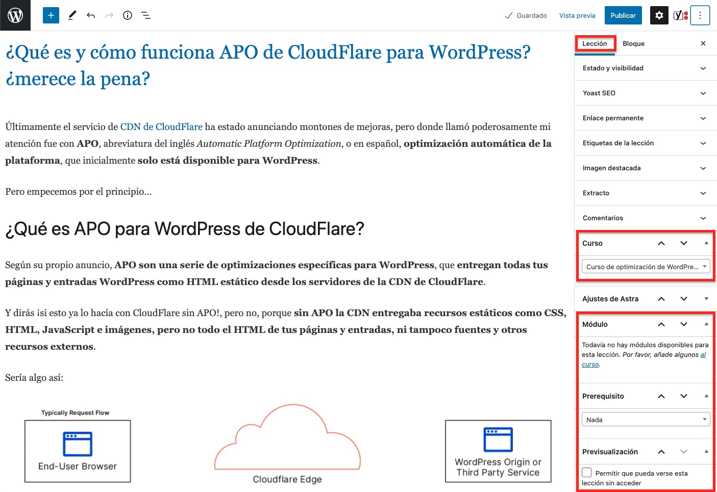 - Contenido de la entrada -> Contenido de la lección, con todas sus imágenes y demás elementos (bloques, incrustados, etc.)