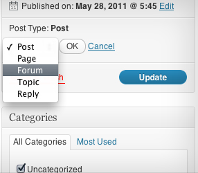 Pero si solo quieres convertir alguna entrada en página, o página en entrada, quizás tu mejor opción sea Post Type Switcher. Este completo plugin permite hacer conversiones entre cualquier tipo de entrada, incluso en tipos personalizados, y lo mejor de todo es que lo haces desde el mismo editor de entradas, pues añade una lista desplegable en el widget «Publicar» del editor, para que hagas el cambio a un clic.