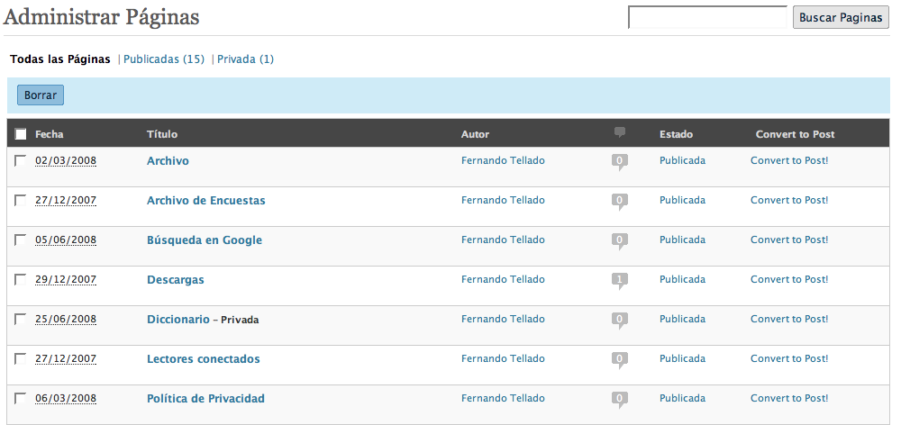 Si alguna vez has querido convertir posts en páginas, o al revés, seguramente habrás empezado a hacer copiapega de códigos, crear el nuevo contenido y luego borrar el anterior. No es algo muy habitual pero hay situaciones en que puedes necesitarlo.