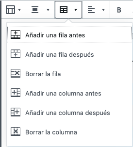 Pero aquí no acaba la cosa, si haces clic en cualquier celda de la tabla puedes, desde los ajustes de formato de la misma, añadir o quitar filas y columnas fácilmente, como te comenté antes.