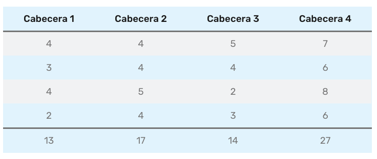 - Sección del pie de página: Por si quieres poner información de resumen en cada columna.
