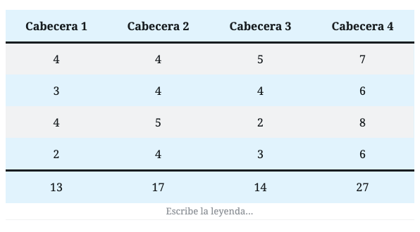 A partir de aquí simplemente rellena las celdas con tu información, como con cualquier tabla simple.