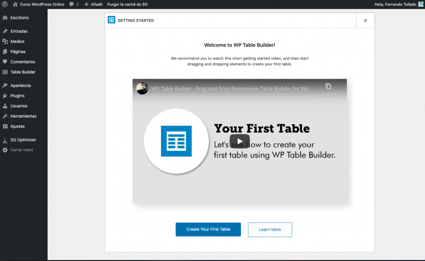 Nada más instalarlo y activarlo la pantalla de bienvenida te muestra un vídeo, pero no hace falta que pierdas tiempo viéndolo, simplemente pulsa el botón de crear tu primera tabla y … ¡sorpresa!