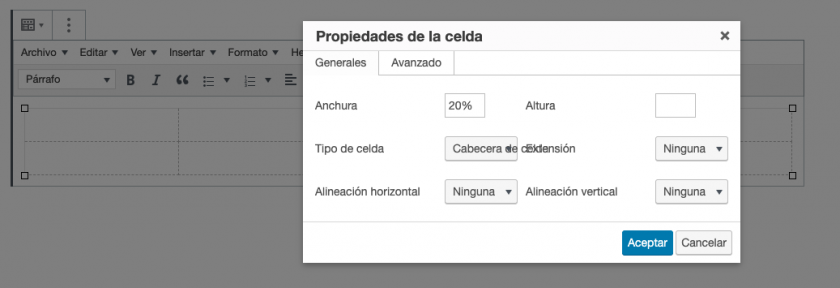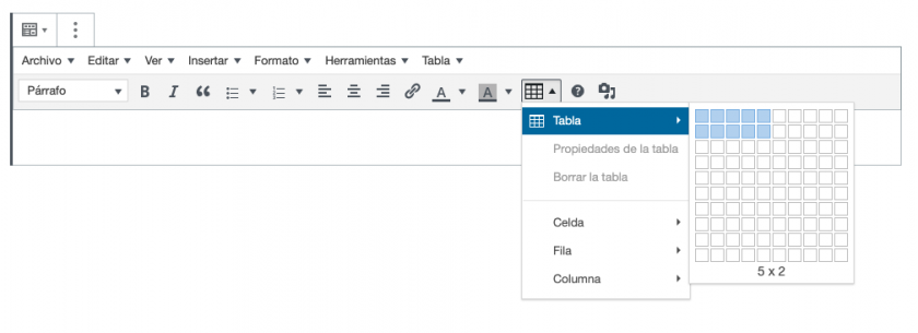 Pero, ateniéndonos a la temática de este artículo, cuando hablamos de creación de tablas, la funcionalidad base que incorpora TinyMCE Advanced es sustituir el bloque clásico por uno más completo que incorpora la funcionalidad de creación de tablas.
