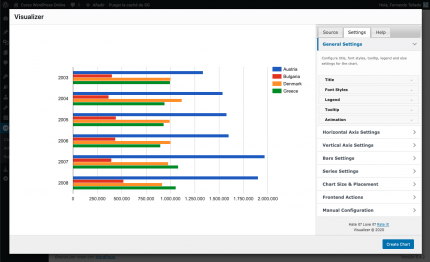 Pero la cosa no ha hecho más que empezar. En la pestaña de ajustes (Settings) puedes configurar prácticamente cada aspecto visual y de funcionamiento del gráfico o tabla, con un gran nivel de detalle.